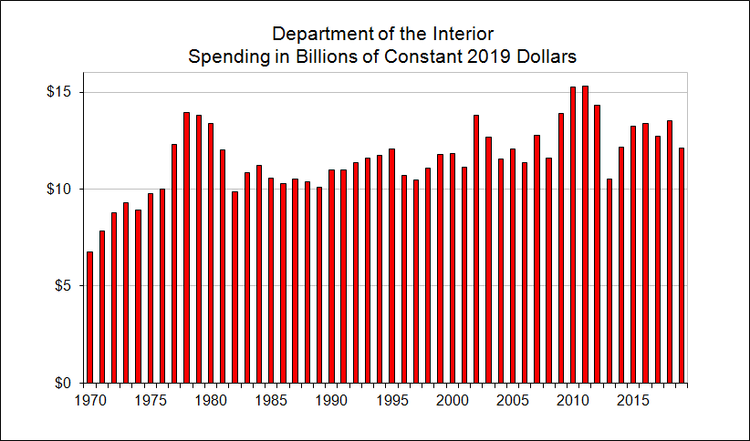 Interior will spend a net $12 billion in fiscal 2019, or about $95 for every U.S. household. The department employs about 66,000 workers and operates 290 subsidy programs.