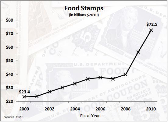 Not surprisingly, the cost of the food stamps program has gone through the roof: