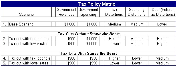 The following Tax Policy Matrix helps sort out which sorts of tax cuts make economic sense when government size is also a consideration.