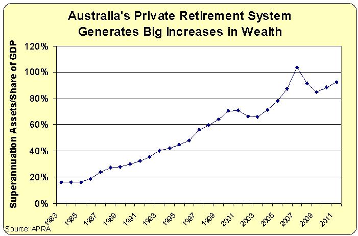 One reason I’m so bullish on Australia is that the nation has a privatized Social Security system called “Superannuation,” with workers setting aside 9 percent of their income in personal retirement accounts (rising to 12 percent by 2020).